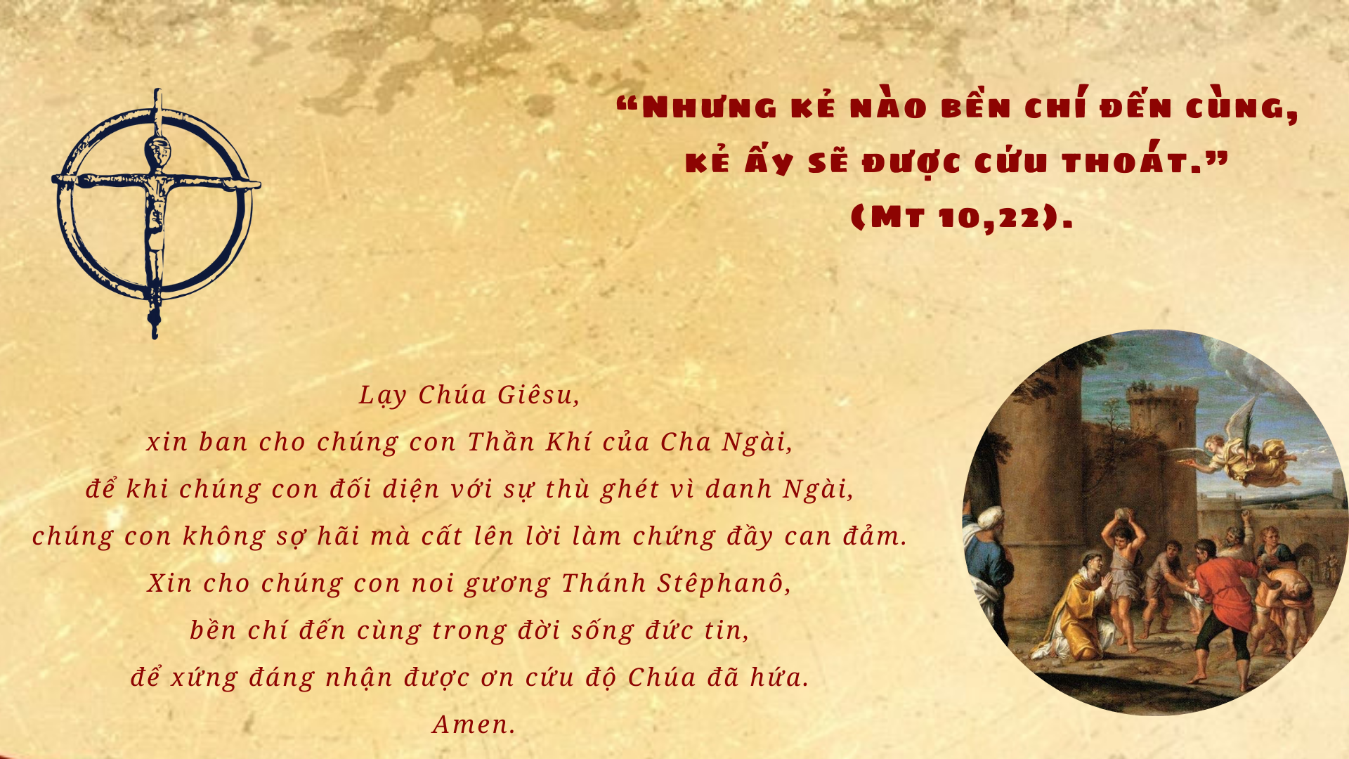 Lạy Chúa, gia đình chúng con tạ ơn Chúa đã ban cho chúng con một người mẹ là Đức Maria. Xin cho gia đình chúng con biết noi gương Mẹ, luôn lắng nghe Lời Chúa và đem ra thực hành.
