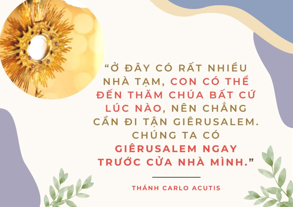 Nhưng hôm nay, qua lời nhắn nhủ của Thánh Acutis, Chúa lại nói với tôi rằng Giêrusalem ở đây, Chúa ở đây, thật sự hiện diện sống động ở đây, ngay bên. Tôi không phải đi xa xôi tìm kiếm. Điều xa nhất mà tôi cần vượt qua lúc này chính là sự quên lãng của lòng mình, là tôi đang quên “tình yêu thuở ban đầu”, tôi đã quên điều Chúa muốn nơi tôi chỉ là Tình Yêu.