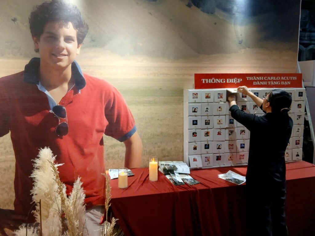 Khi đến nơi, tôi thật sự ấn tượng vì cách trưng bày công phu, đẹp lạ và giàu ý nghĩa thiêng liêng. Không chỉ là triển lãm, đây còn là một ngày hội đức tin với rất nhiều hoạt động để mọi người tham gia như tô vẽ tranh về Thánh Acutis, mua sách, túi sách và áo thun kỷ niệm, hoặc hồi hộp nhận các thông điệp đặc biệt của Thánh nhân dành cho từng người. Hơn 100 Phép lạ Thánh Thể, mỗi câu chuyện là một minh chứng sống động cho tình yêu Chúa, rất phong phú, từ nhiều nước nhiều thành phố khác nhau.