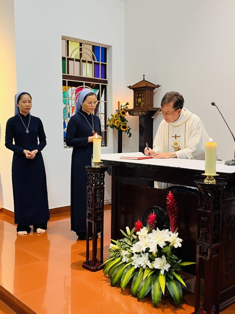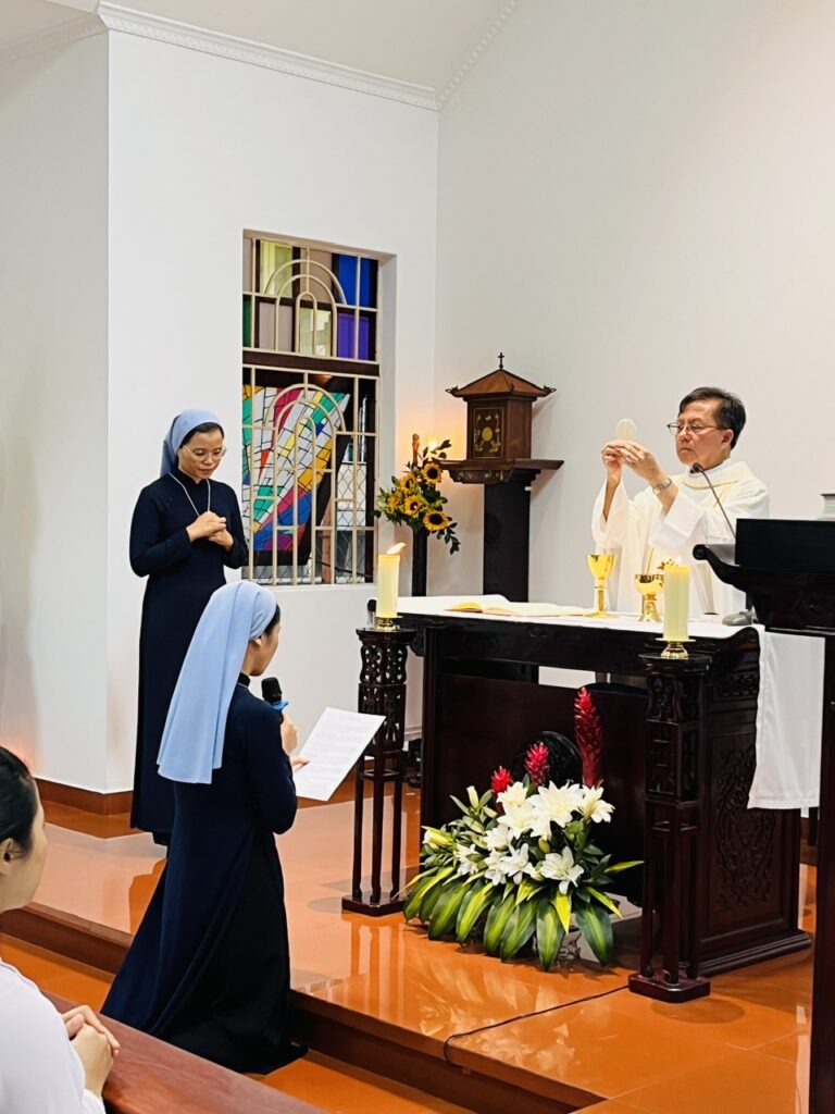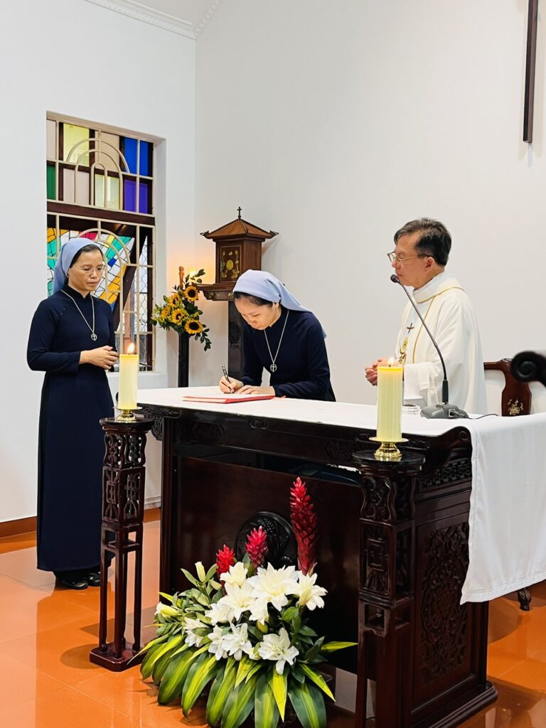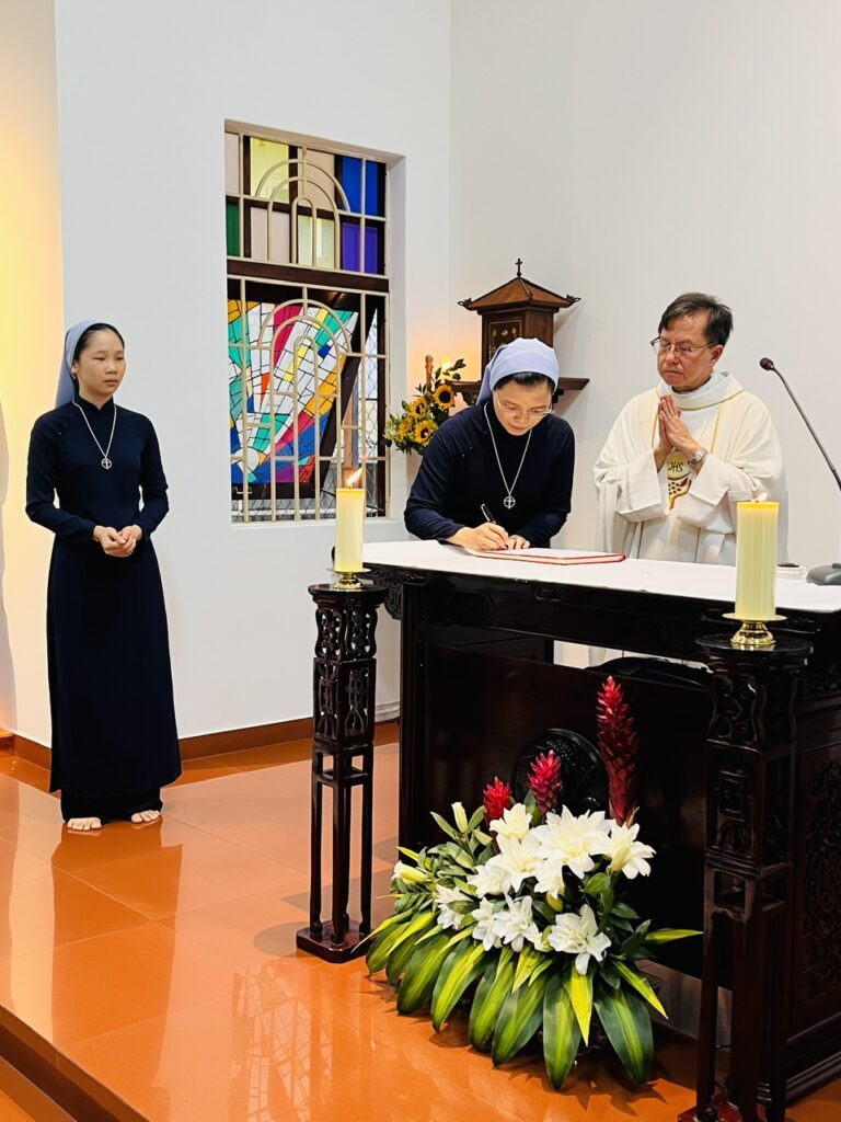 Trong Thánh lễ, Sơ Cécile-Paul đã lặp lại lời cam kết sống ba lời khuyên Phúc Âm: Khiết tịnh, Khó nghèo và Vâng phục, như một lời đáp trả mới mẻ và trọn vẹn hơn trước tình yêu Thiên Chúa. Nghi thức đơn sơ nhưng sâu lắng này không chỉ là một dấu ấn thiêng liêng trong hành trình ơn gọi của Sơ, mà còn là niềm vui chung của toàn thể Hội Dòng.