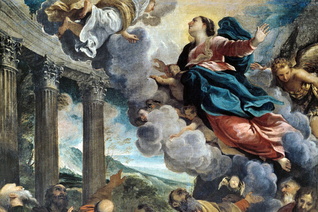 Mầu nhiệm hôm nay được khắc họa trong tác phẩm nghệ thuật của họa sĩ “người Ý” theo trường phái Barốc thế kỷ 16, Annibale Carracci. “L’Assunzione della Vergine – Đức Trinh Nữ Lên Trời – là một phần của bức tranh lớn hơn phía sau bàn thờ tại Nhà thờ Santa Maria del Popolo thuộc Vương cung Thánh đường Rôma.