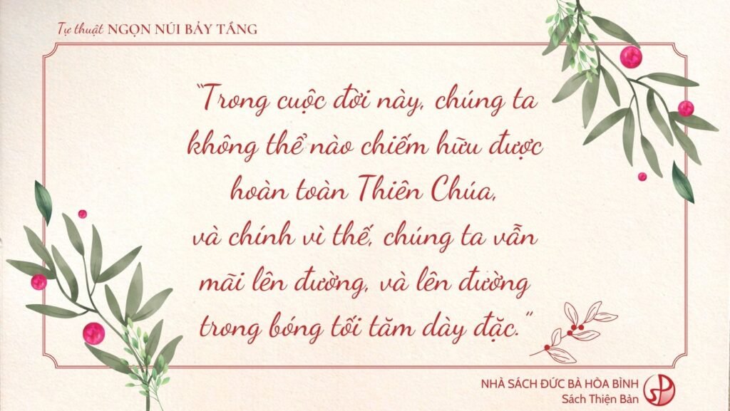 Trên đây chỉ là đôi nét chấm phá thay lời giới thiệu tác phẩm. Chắc chắn chúng không thể lột tả hết chiều sâu của quyển tự thuật được xem là đã để lại nhiều ảnh hưởng tốt lành trong lòng độc giả trong và ngoài Công giáo hơn 70 năm qua, được xác nhận phần nào từ số lượng hàng triệu bản tiêu thụ và được dịch sang nhiều ngôn ngữ trên thế giới. Ấn bản tiếng Việt được chăm chút cả nội dung lẫn hình thức này là công trình làm việc năm năm trời của nhóm Biên dịch Sept-Fons, vốn được độc giả Công giáo trong nước biết đến những ngăm gần đây qua những tác phẩm tu đức của Cha Jérôme.