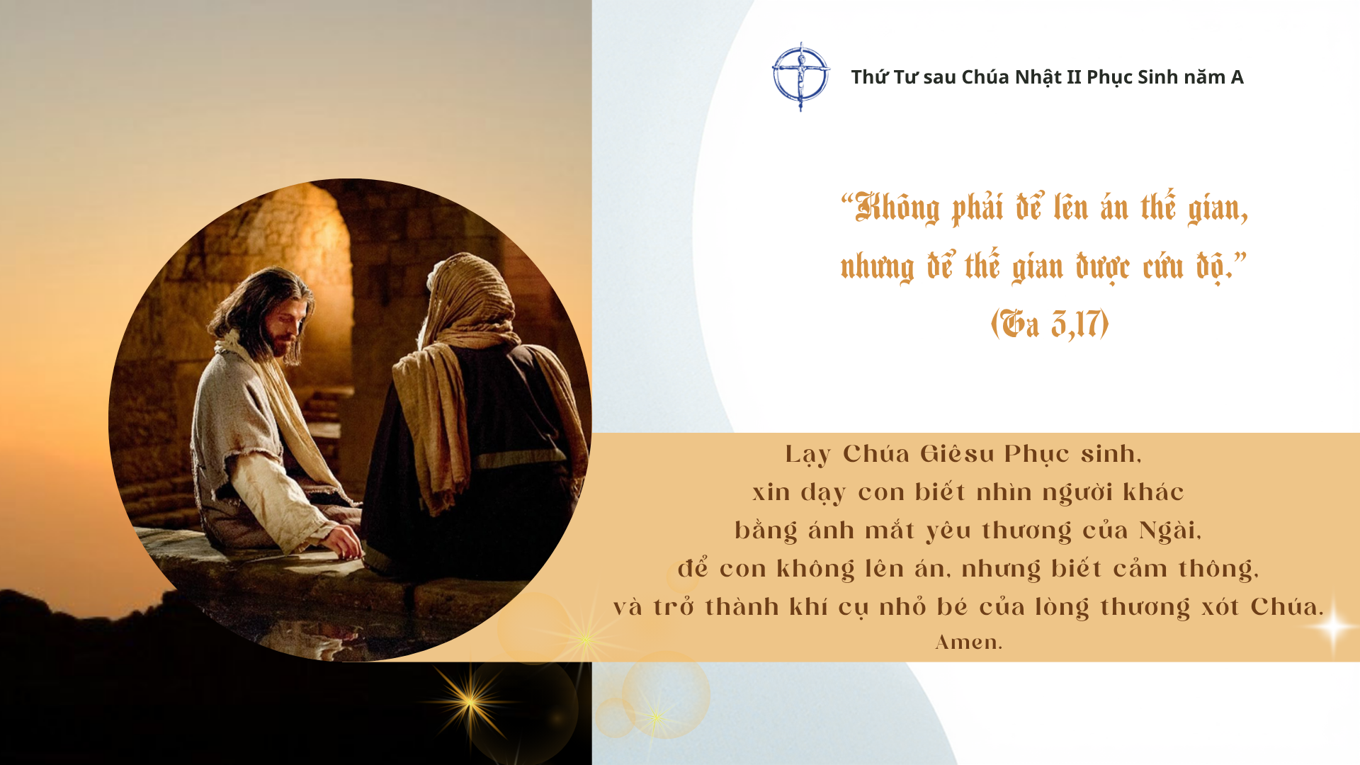 Cái nhìn ấy không xóa đi thực tại đau khổ, nhưng biến đổi nó. Khi hướng lên Thập Giá, con người không còn ở lại trong tuyệt vọng, nhưng chạm đến một tình yêu lớn hơn mọi giới hạn. Chính nơi Thập Giá, sự chết không còn là điểm kết thúc, nhưng trở thành con đường dẫn đến sự sống. Đức tin có thể đến từ một cử chỉ rất nhỏ, đó là ngước nhìn lên. Không cần phải hiểu hết, chỉ cần hướng về Chúa trong một niềm tín thác đơn sơ. Và chính nơi cái nhìn ấy, sự sống bắt đầu nảy nở.