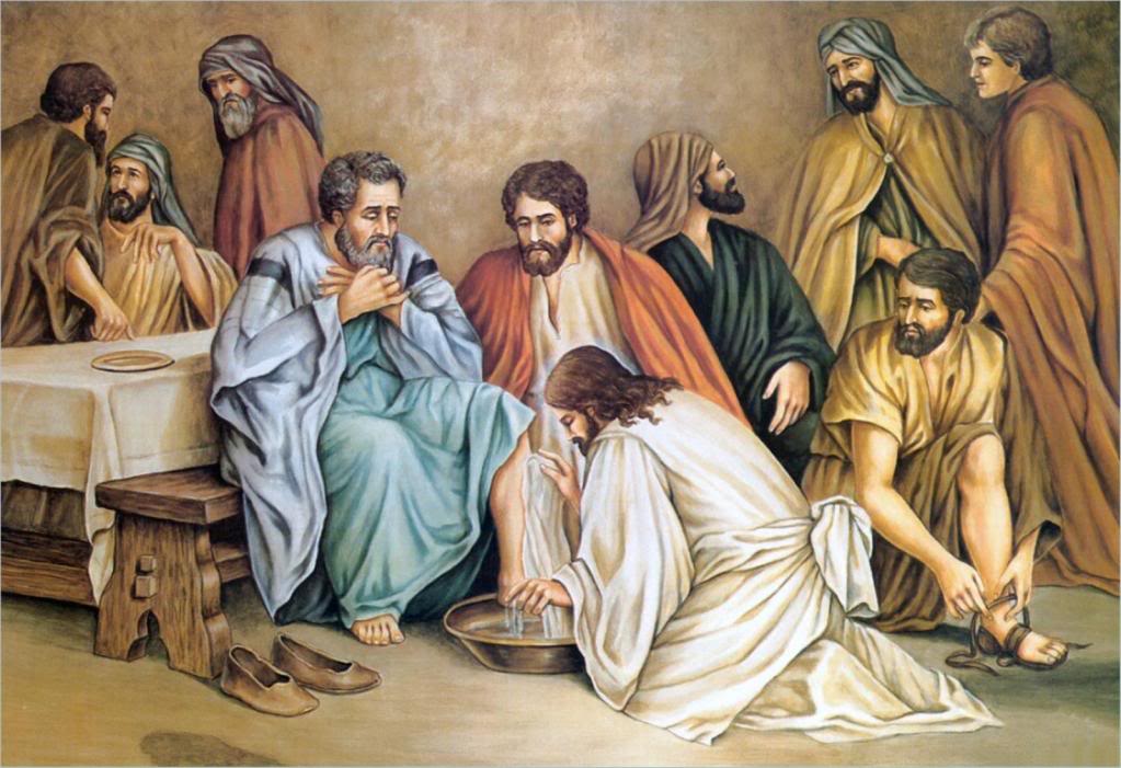 Trước ngày lễ Vượt Qua, Chúa Giêsu biết đã đến giờ mình phải bỏ thế gian mà về cùng Chúa Cha. […] Người liền rửa chân cho các môn đệ và lấy khăn thắt lưng mà lau. Vậy Người đến chỗ ông Simon Phêrô, ông này thưa Người rằng: “Lạy Thầy, Thầy định rửa chân cho con ư?” Chúa Giêsu đáp: “Việc Thầy làm, bây giờ con chưa hiểu, nhưng sau sẽ hiểu.” Phêrô thưa lại: “Không đời nào Thầy sẽ rửa chân cho con.” Chúa Giêsu bảo: “Nếu Thầy không rửa chân cho con, con sẽ không được dự phần với Thầy.” Phêrô liền thưa: “Vậy xin Thầy hãy rửa, không những chân con, mà cả tay và đầu nữa.” Chúa Giêsu nói: “Kẻ mới tắm rồi chỉ cần rửa chân, vì cả mình đã sạch. Tuy các con đã sạch, nhưng không phải hết thảy đâu!” […] Sau khi đã rửa chân cho các ông, Người mặc áo lại, và khi đã trở về chỗ cũ, Người nói: “Các con có hiểu biết việc Thầy vừa làm cho các con chăng? Các con gọi Ta là Thầy và là Chúa thì phải lắm, vì đúng thật Thầy như vậy. Vậy nếu Ta là Chúa và là Thầy mà còn rửa chân cho các con, thì các con cũng phải rửa chân cho nhau.” […]