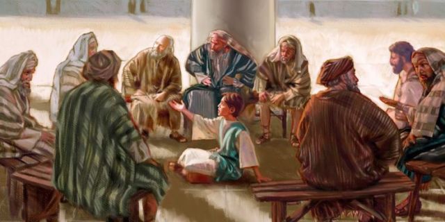 Hằng năm cha mẹ Chúa Giêsu có thói quen lên Giêrusalem để mừng Lễ Vượt Qua. Lúc bấy giờ Chúa Giêsu lên mười hai tuổi, cha mẹ Người đã lên Giêrusalem, theo tục lệ mừng ngày Lễ Vượt Qua. Và khi những ngày lễ đã hoàn tất, hai ông bà ra về, trẻ Giêsu đã ở lại Giêrusalem mà cha mẹ Người không hay biết […]. Nhưng không gặp thấy Người, nên hai ông bà trở lại Giêrusalem để tìm Người. Sau ba ngày, hai ông bà gặp thấy Người […] và mẹ Người bảo Người rằng: “Con ơi, sao Con làm cho chúng ta như thế? Kìa cha Con và mẹ đây đã đau khổ tìm Con”. Người thưa với hai ông bà rằng: “Mà tại sao cha mẹ tìm Con. Cha mẹ không biết rằng Con phải lo công việc của Cha con ư?” […]. Bấy giờ Người theo hai ông bà trở về Nadareth, và Người vâng phục hai ông bà. Maria, mẹ Người ghi nhớ những việc đó trong lòng. Còn Chúa Giêsu thì tiến tới trong sự khôn ngoan, tuổi tác và ân sủng, trước mặt Thiên Chúa và người ta.