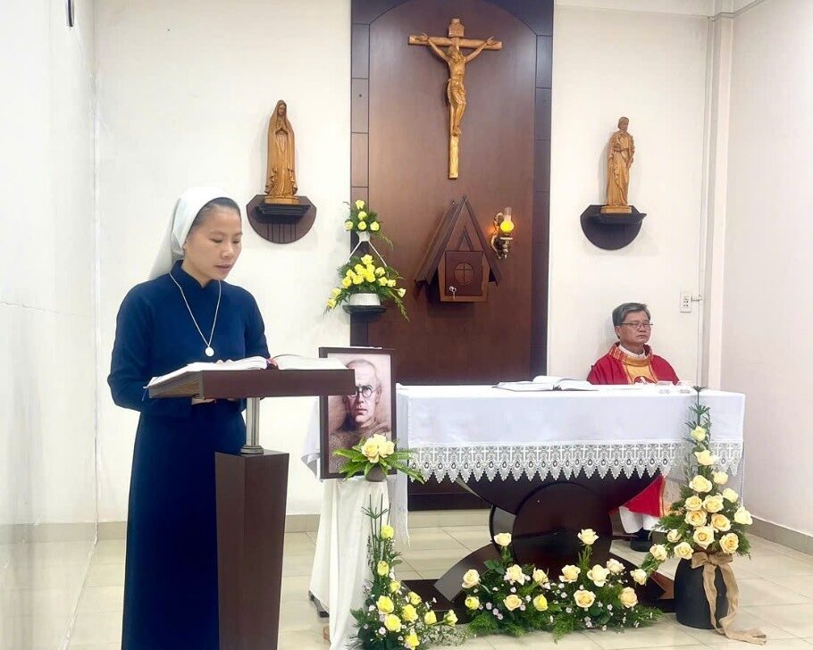 Cùng chung niềm vui với Cộng đoàn Bảo Lộc, sáng ngày 14.8, cha Giuse Trần Đức Liêm – Quản hạt và cũng là Cha sở Giáo xứ Bảo Lộc đã dâng thánh lễ tạ ơn cùng với Chị Em. Trong bài giảng, Cha nhắc đến một trong những nhân đức của thánh nhân là lòng sùng kính Đức Maria Vô Nhiễm Nguyên Tội, và ngài được mệnh danh là “người con điên của Đức Mẹ”.