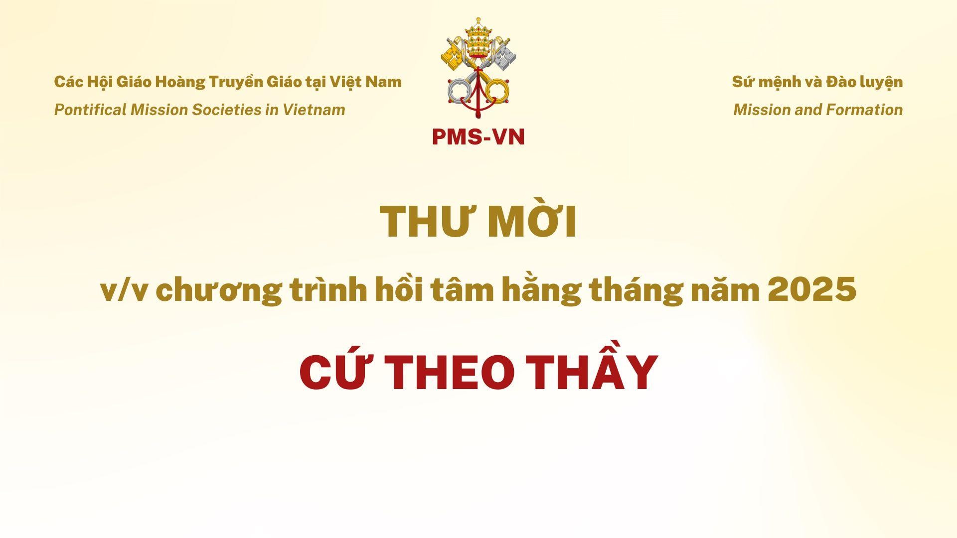Năm 2024 vừa qua, văn phòng Quốc gia các Hội Giáo hoàng Truyền giáo Việt Nam (PMS-VN) đã tổ chức chương trình hồi tâm hằng tháng với chuyên đề “Cứ Theo Thầy” (x. Ga 21, 22).