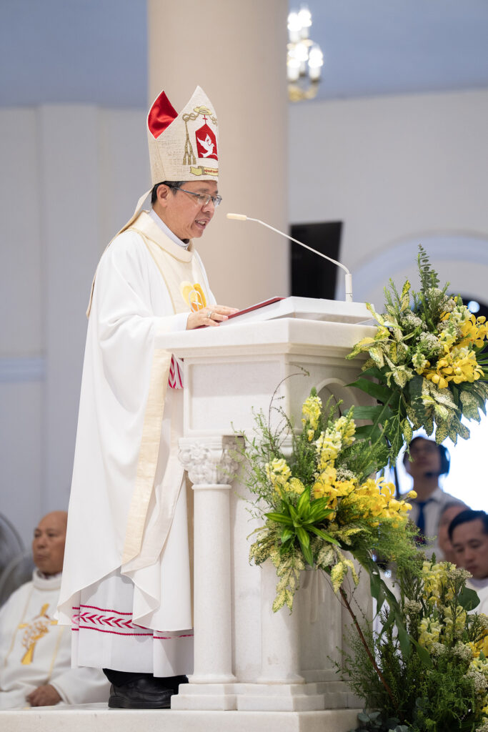Thánh Lễ được tổ chức vào lúc 9g ngày 25.01.2024 tại Nhà thờ Tân Định, với sự chủ tế của Đức Cha Giuse Đỗ Mạnh Hùng – Giám mục Giáo phận Phan Thiết. Đồng tế với ngài có Đức Cha Giuse Bùi Công Trác – Giám mục Phụ tá Tổng Giáo phận Sài Gòn, Cha Tổng đại diện Ignatio Hồ Văn Xuân, Quý Đức Ông, Quý Cha trong và ngoài Giáo phận.